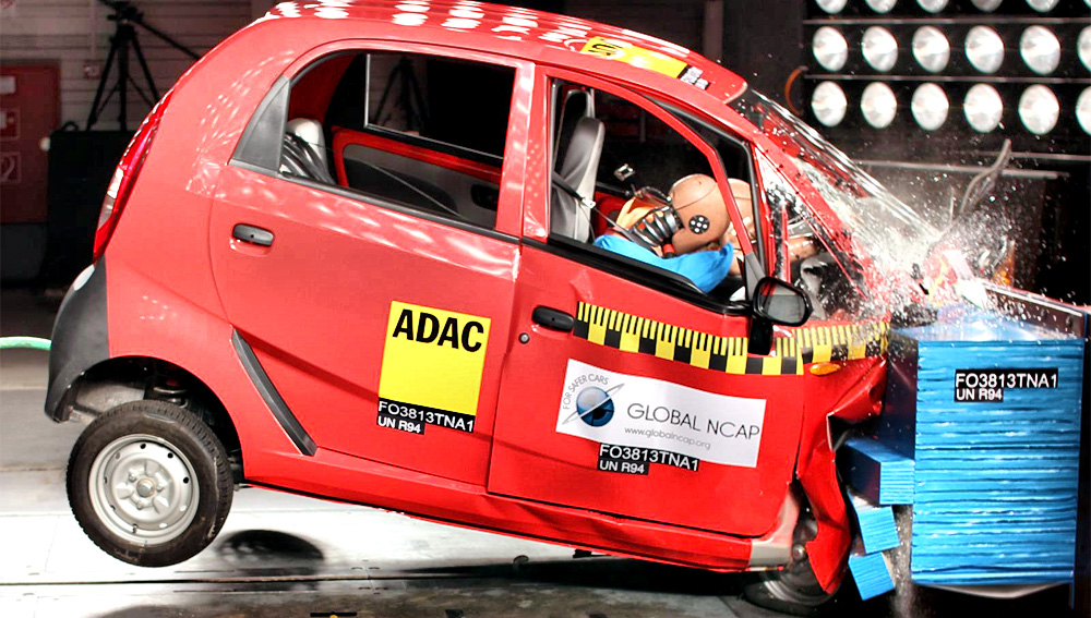 Niektoré z najpopulárnejších malých vozidiel predávaných v Indii, vrátane Maruti Alto 800, Tata Nano, Ford Figo, Hyundai i10 a Volkswagen Polo zlyhali v crash testoch. Tie ukázali vysoké riziko život ohrozujúceho zranenia pri dopravnej nehode. Kombinované predaje spomenutých piatich vozidiel tvoria asi 20 percent všetkých nových vozidiel predaných v Indii za minulý rok.