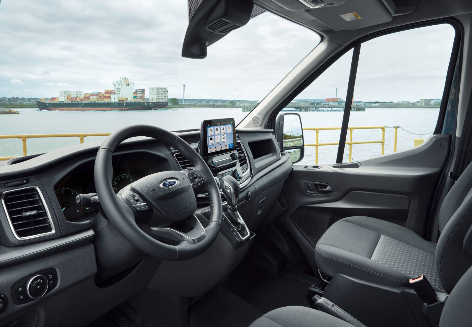 V súlade s posledným modelom Transit Custom získal nový Transit úplne nový dizajn interiéru s prepracovaným štýlom, praktickými vlastnosťami a komfortom pre vodiča. Na prístrojovej doske sú teraz ďalšie praktické prvky pre vodičov, ktorí kabínu využívajú ako mobilnú kanceláriu, vrátane výrazne zdokonaleného úložného priestoru s tromi otvorenými schránkami vo vrchnej časti. Nová dokovacia stanica v modeloch z nižších sérií umožňuje vodičom upevniť mobilné telefóny aj väčšie tablety.