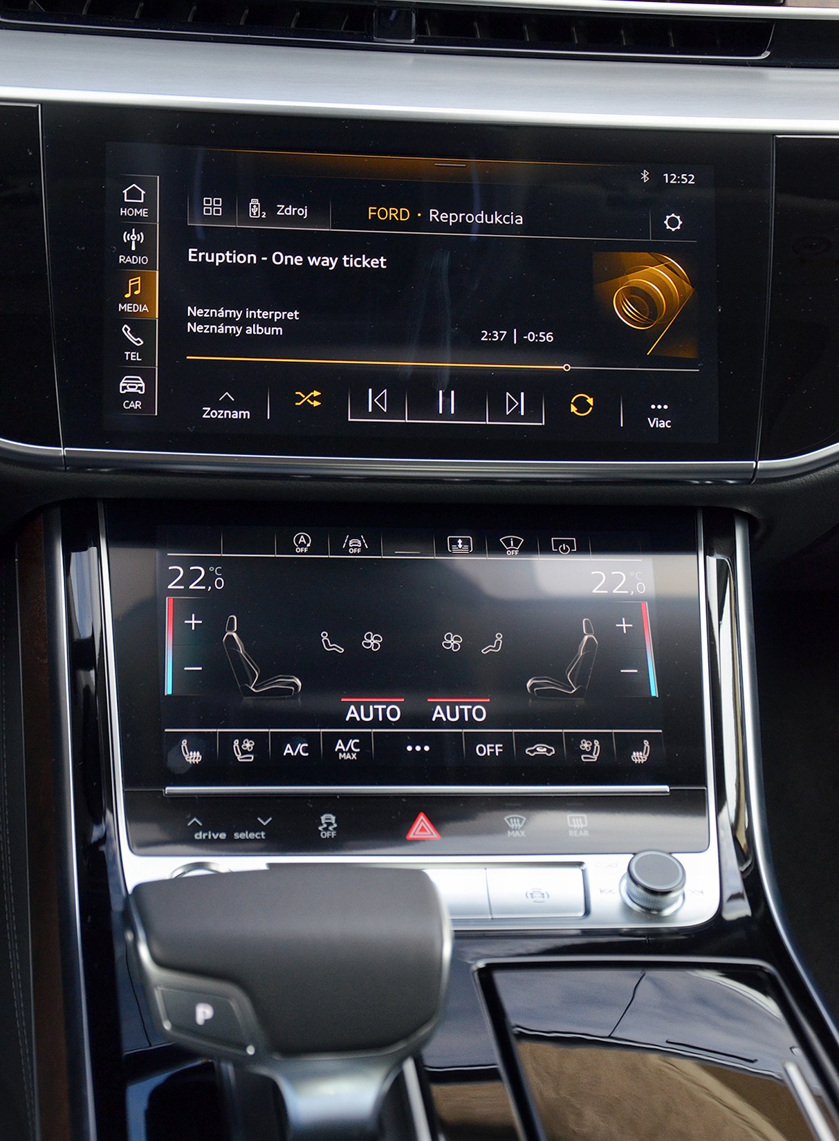 Audi A8 je predovšetkým o komforte. Jej pohodlné kreslá sú všemožne nastaviteľné a pochopiteľne im nechýba ani masážna funkcia. Odhlučnenie je také dokonalé, že keď som zatrúbil, znelo to, akoby niekde v diaľke trúbilo iné auto. Komfortný bol však aj predošlý model. Vyvinúť jeho nástupcu preto nebolo jednoduché. Konštruktéri sa vydali cestou digitalizácie. Tradičných tlačidiel je v novom modeli pomenej, ale tie dôležité ostali, čo je výborné. Digitálny prístrojový panel Audi virtual cockpit poznáme už aj z iných modelov. Veľký displej multimediálneho systému MMI je taktiež samozrejmosťou, ale úplnou novinkou je tretí displej pod ním, ktorý primárne slúži na ovládanie klimatizácie. Ak však nemáte radi dotykové displeje, nemusíte zúfať. Obidva sú totiž „haptické“, čiže sa dajú aj fyzicky stlačiť, čo vám poskytne hmatovú „spätnú väzbu“ o tom, že ste stlačili, čo ste chceli. Táto funkcia môže byť samozrejme aj vypnutá.