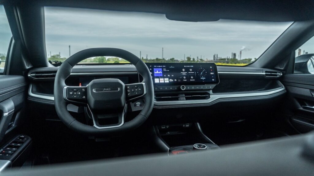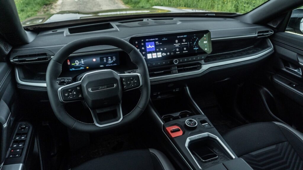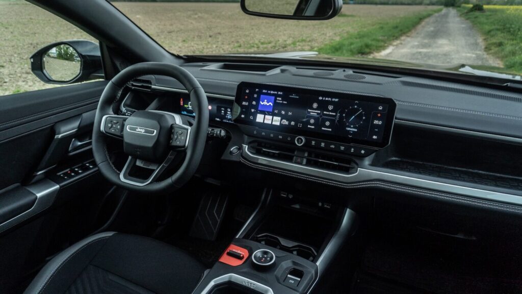 Novinkou je aj multimediálny displej, ktorého iteráciu už možno v koncerne zočiť, no zatiaľ len v úzkej skupine modelov. Avšak opäť, v rámci Compassu je zasadený do rámu, ktorý jasne hovorí, že sedíte v Jeepe. Obrazovka má 16 palcov, tri domovské obrazovky a výbornú odozvu. Funkcia rozdelenej obrazovky sa hodí tiež.