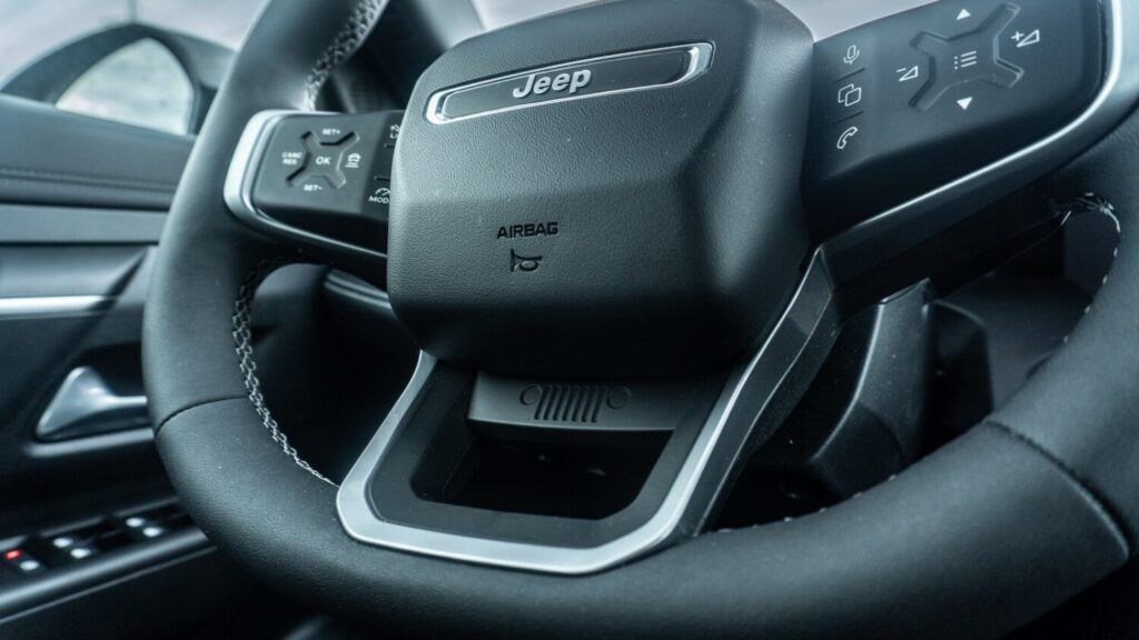 Na elektrickom Compasse je veľmi príjemná súhra podvozku a odhlučnenia. Nerovnosti na ceste sa do priestoru posádky prenášajú minimálne a vďaka hmotnosti elektromobilu auto príkladne filtruje nerovnosti. Aerodynamický hluk nie je potláčaný nijako sofistikovane, no napriek tomu zaručuje jazdu tak tichú, že vás to prekvapí. Obzvlášť vzhľadom na tvary karosérie.