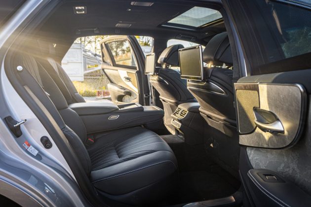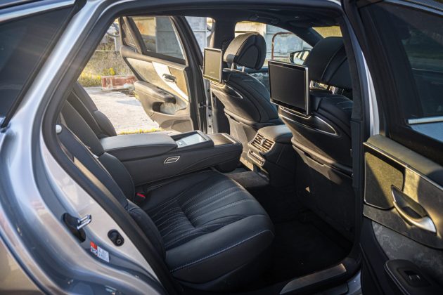 Tento Lexus je napríklad napriek všetkému zdaniu päťmiestny. Medzi zadnými sedadlami by ste našli pravdepodobne najrozsiahlejšiu výklopnú lakťovú opierku s informačným a ovládacím centrom.