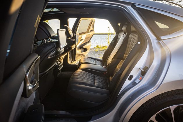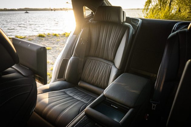 Ozaj, napriek zdaniu je tento Lexus päťmiestny – veľká lakťová opierka sa dá schovať do lavice