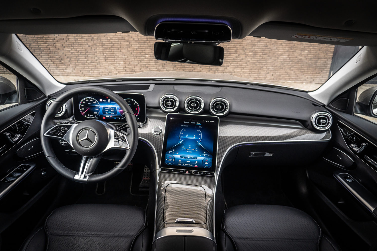 Digitálny prístrojový štít pred vodičom je tradične dokonalý. Poskytuje perfektnú odozvu, je vo vysokej miere personalizovateľný a jeho grafické spracovanie je výborné. Obe obrazovky je možné ovládať priamo prostredníctvom dotykových plôch na volante. Tie vyzerajú podľa nášho názoru o stupeň lacnejšie ako v predošlej verzii Triedy C. Ale koľko ľudí, toľko chutí.